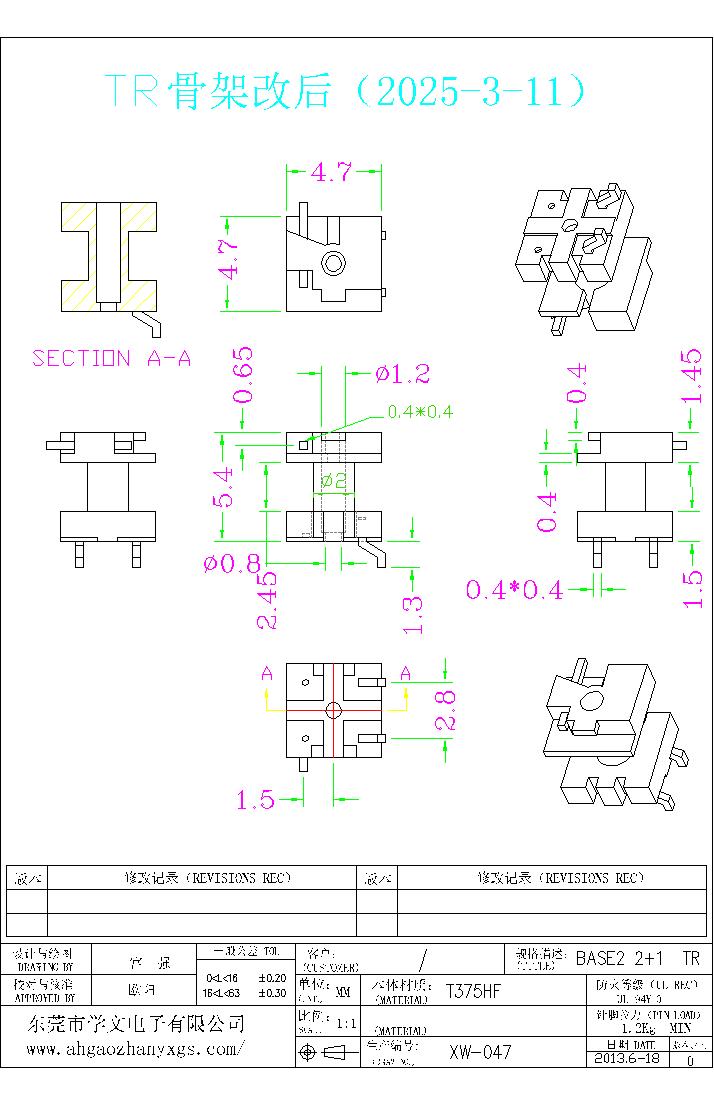 XW-047 BASE2+1 高頻電木變壓器骨架